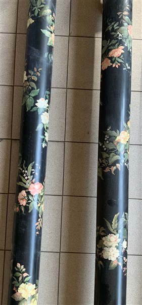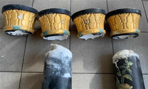 Lotto composto da quattro colonne in gesso decorate in policromia a fiori con c