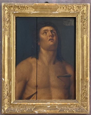 Ignoto, antico dipinto raffigurante "Martirio di San Sebastiano", olio su tavol