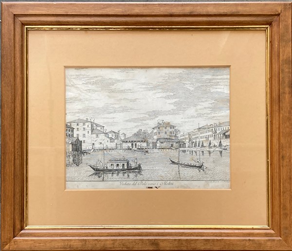 Lotto 2923 | Gianfrancesco Costa, veduta del Dolo verso i Molini, acquaforte (cm 23x32 al vi