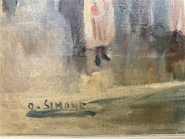 O. Simone "Scena di Piazza" olio su tela (cm 49x69) firmato in basso a sinistra