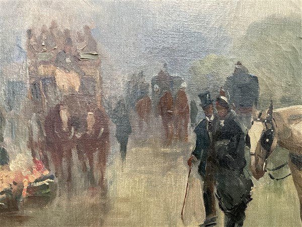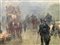 "Scena di Piazza" olio su tela (cm 49x69) firmato in basso a sinistra