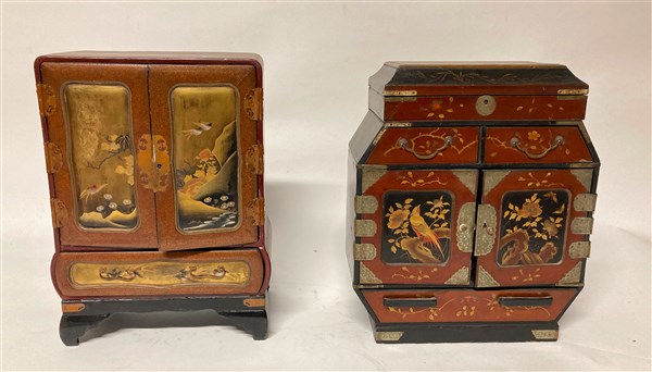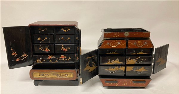 Due stipi da tavolo in legno laccato. Giappone, inizio secolo XX