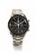 Cassa in tre corpi con fondello a vite, lunetta graduata nera con scala tachimetrica, vetro plastica. Quadrante nero con indici a bastone in materiale luminescente, lancette bianche con inserto in materiale luminescente, secondi cronografici al centro, tre contatori ausiliari a ore 3,6 e 9 rispettivamente con registro dei 30 minuti delle 12 ore e secondi continui. Movimento a carica manuale. Bracciale a maglie satinate in acciaio con chiusura deployante Omega. Diam. mm 42