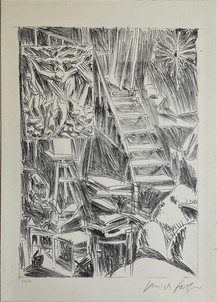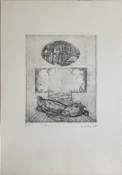 Lotto composto da quattro acqueforti e due litografie, di soggetti, autori e misure diverse, rispettivamente di Dova, Santachiara, Mucchi, Contini, Fazzini e Paulucci