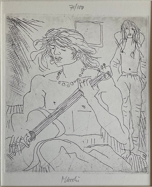 Lotto composto da quattro acqueforti e due litografie, di soggetti, autori e mi