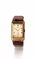 Cassa rettangolare con fondello a scatto, carrure gradinata, anse inclinate, vetro plastica. Quadrante argentè con indici a punta di freccia e numeri arabi applicati oro, secondi ad ore 6, lancette a foglia. Movimento a carica manuale. Cinturino in pelle con fibbia ad ardiglione in metallo dorato. Dim. mm 31x23