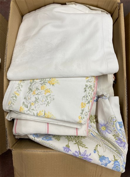 Lotto 2974 | Tre cartoni contenenti numerose tovaglie e stoffe varie per la casa (difetti)