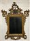 Antica specchiera in legno intagliato e dorato con cimasa a specchio e fregi sc
