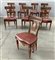 Gruppo di otto sedie con schienale traforato con fascia, cartella intagliata con fiocco e riccioli, gambe rastremate e scanalate decorato all'attacco da rosini, seduta in pelle (dmr)