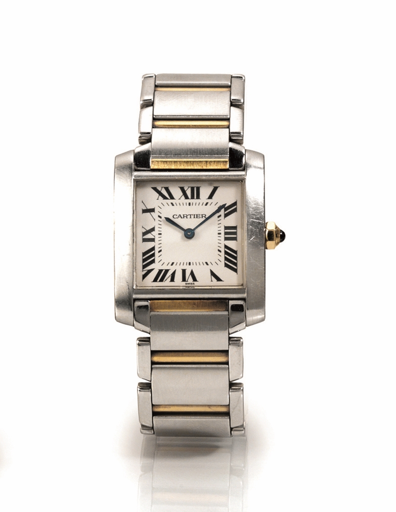 Orologio da polso Cartier Tank Francaise, in acciaio e oro, con scatola Cassa...