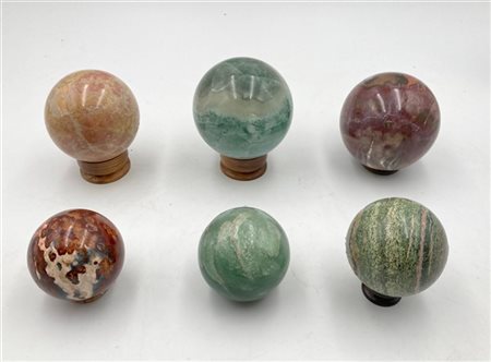 Lotto composto da sei sfere in marmi e pietre di diversa dimensione