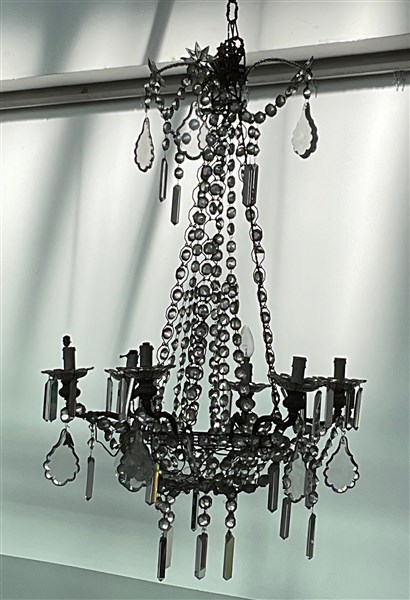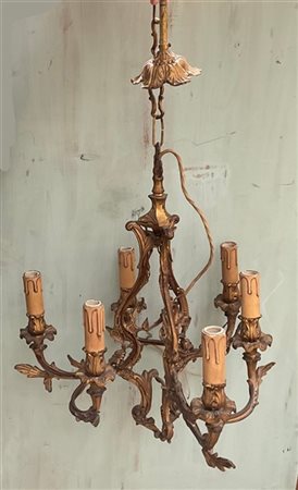Lotto composto da due lampadari in metallo e vetro di epoche e fatture differenti (difetti e mancanze)