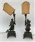 "Dignitari" coppia di figure in bronzo reggitorcia montate a luce elettrica