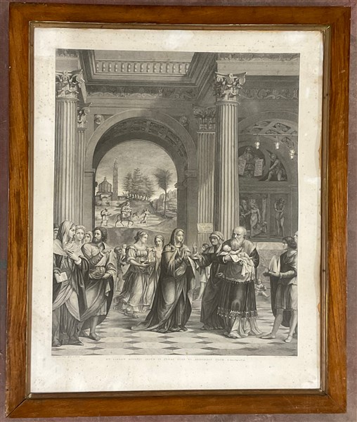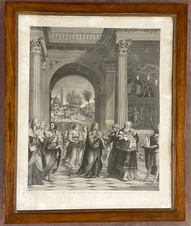 "Presentazione di Gesù al tempio" acquaforte del secolo XIX dall'opera di Bernardino Luini (foglio cm 84x63), in cornice
