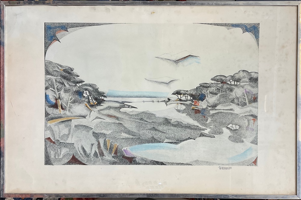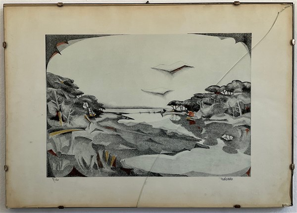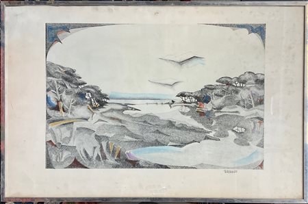 Ennio Busonero Due litografie a colori raffiguranti paesaggi (cm 47x68) firme in basso In cornici (lievi difetti)