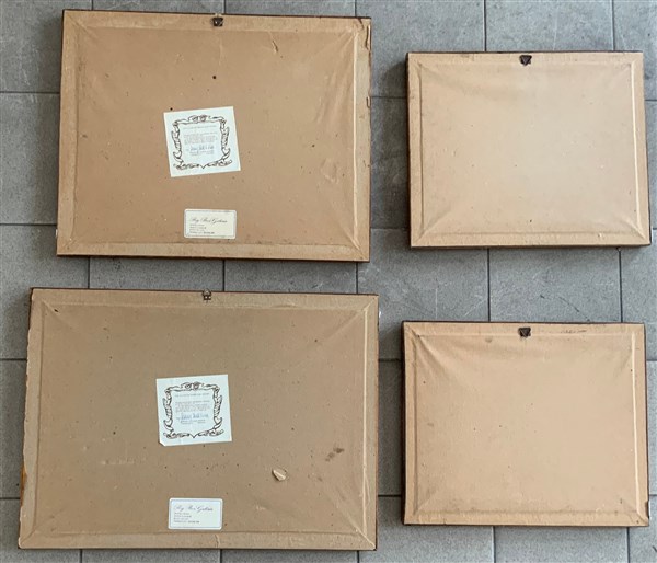 Gruppo di quattro incisioni inglesi a colori raffiguranti scene di caccia. In cornici. Misure diverse