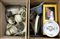 Lotto di due cartoni contenenti numerosi oggetti, principalmente per la tavola,