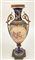 Manifattura francese. Vaso biansato in porcellana montata in bronzo decorata su