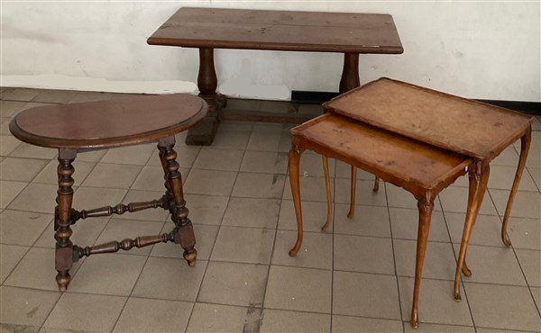Lotto composto da tre tavolini da salotto di diverse epoche e decoro (difetti)
