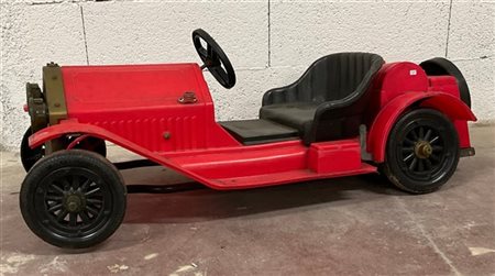 Automobilina a pedali con scocca in materiale plastico e ruote con gomme, unita