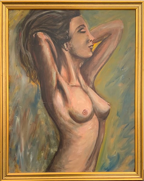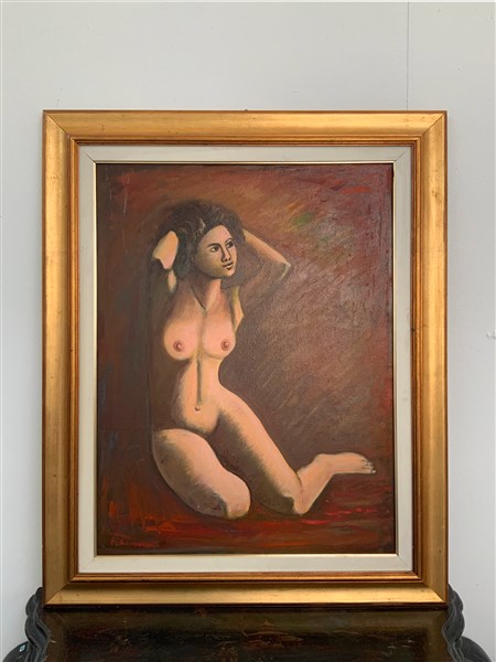 Lotto di cinque dipinti ad olio su tela raffiguranti nudi femminili (cm max 80x60 circa), quattro dei quali in cornici