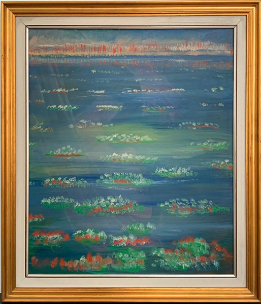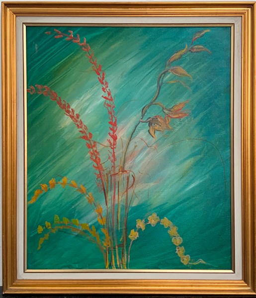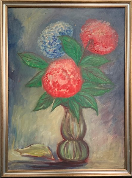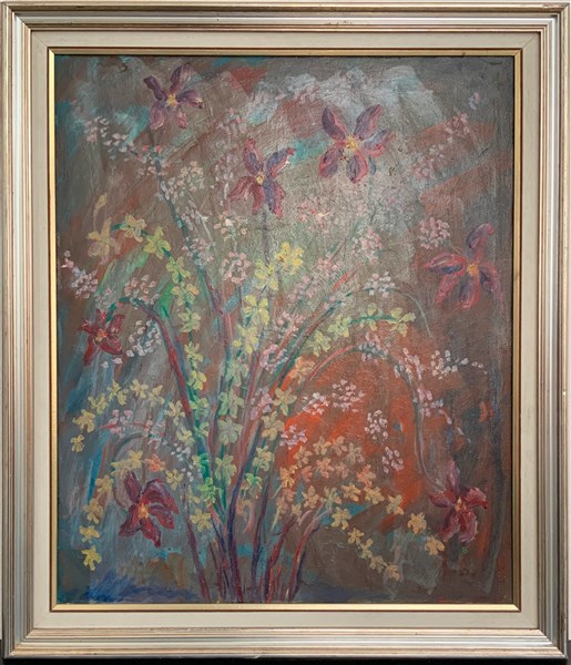 Lotto di sei dipinti ad olio su tela raffiguranti fiori, misure differenti, in cornici