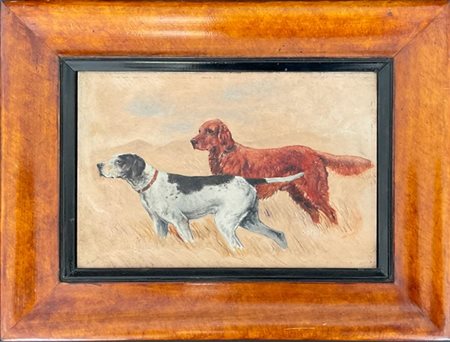Ignoto "Setter e Pointer", tecnica mista su cartoncino (cm 16x23) siglato AW in
