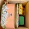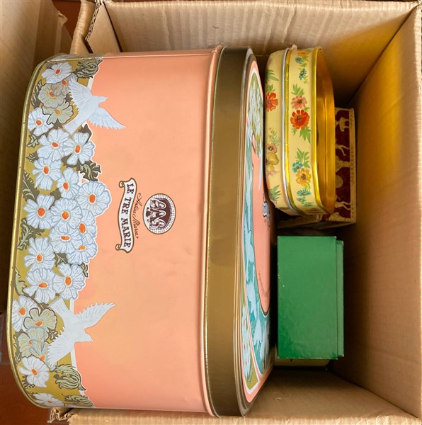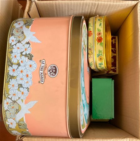Cartone contenente numerose scatole in latta di diverso decoro (difetti)