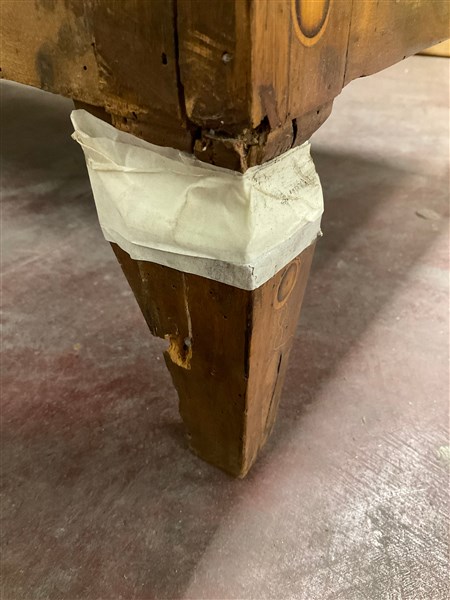 Ribalta in noce intarsiata e filettata a tre cassetti calatoia celante sportell