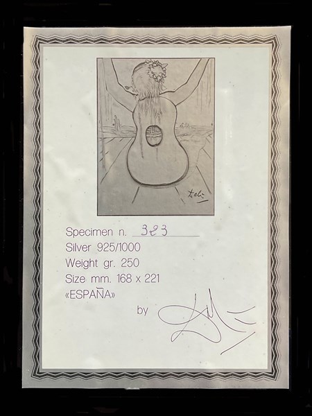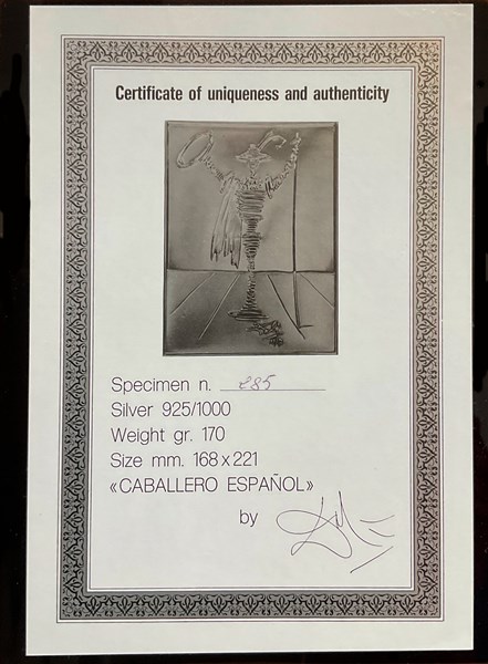 Lotto composto da due multipli su lastra d'argento con soggetti da Dalì (cm 21x16) titolati in basso rispettivamente "Caballero Espanol" e "Espana"