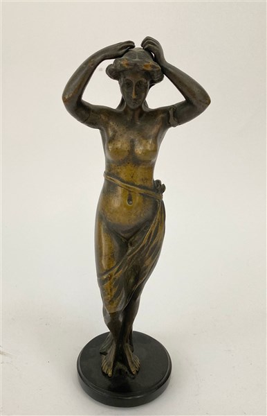 Ignoto secolo XX, Vestale. Scultura in bronzo poggiante su base in marmo nero (h.cm 30)