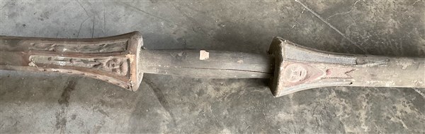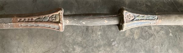 Antica lancia da giostra medievale in legno intagliato (L. cm 410) (difetti)