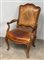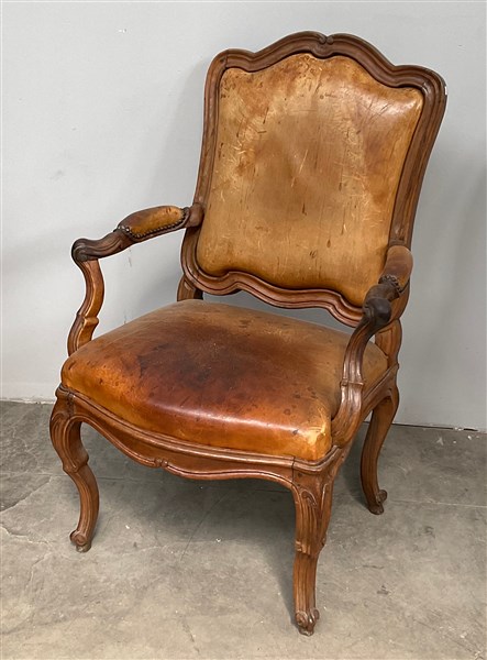 Lotto 3307 | Poltrona in legno intagliato, schienale sagomato; fascia, gambe e braccioli mos