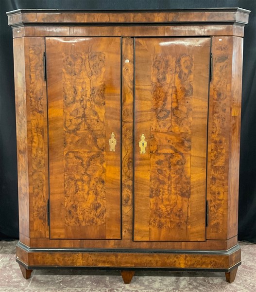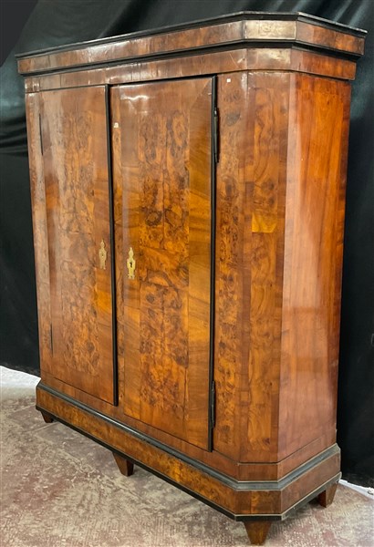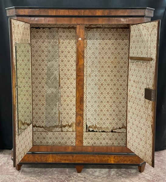 Armadio lombardo lastronato in radica con cornici in legno ebanizzato. Fronte a due ante (cm 180x204x55) (difetti)