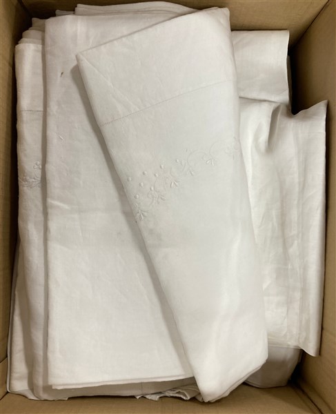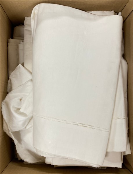 Tre cartoni contenenti numerose lenzuola in tessuto bianco (difetti)