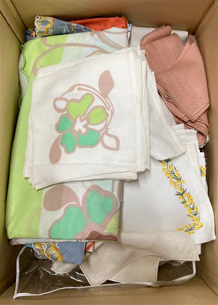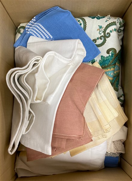 Tre cartoni contenenti biancheria per la casa di diversa fattura (difetti)