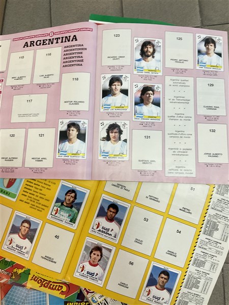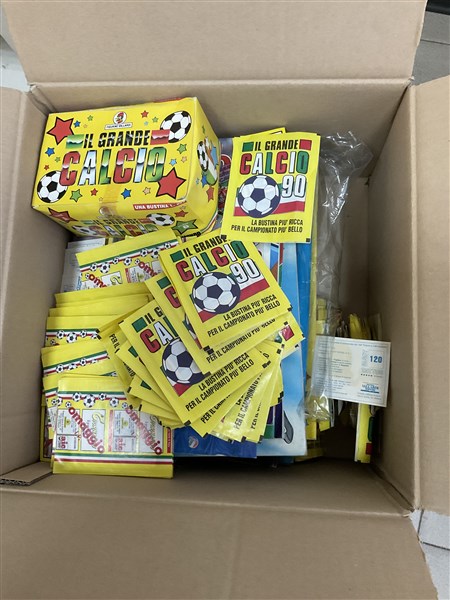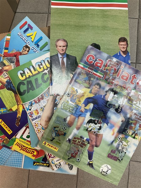 Lotto formato da numerosi album e figurine sciolte del periodo tra cui alcuni album Panini più o meno completi. In uno scatolone. Da esaminare