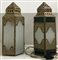 Coppia di lanterne marocchine in metallo traforato e decorato da vetri policromi (h. cm 38) (difetti e mancanze)