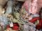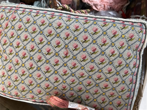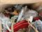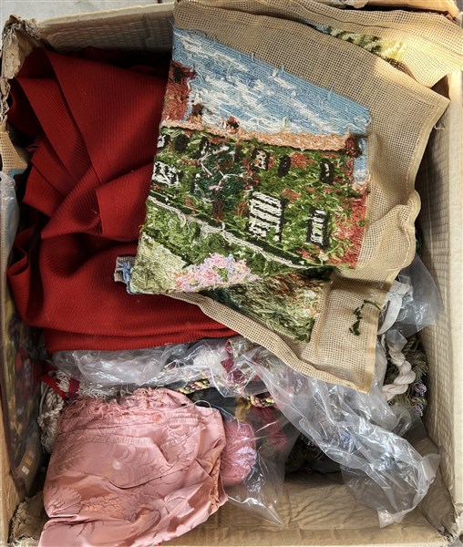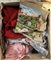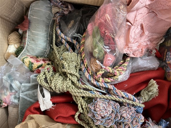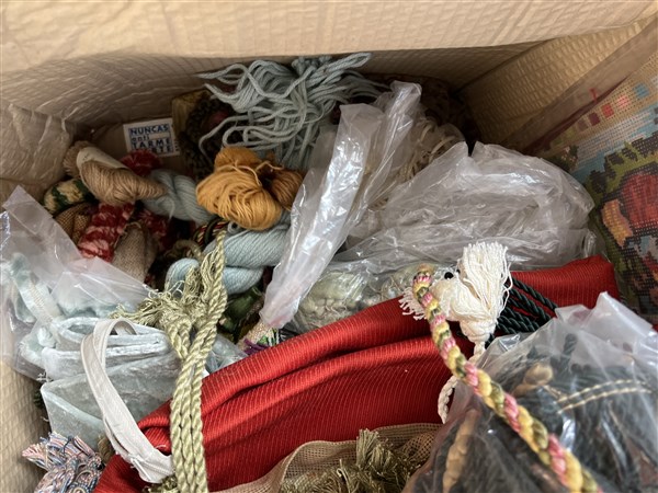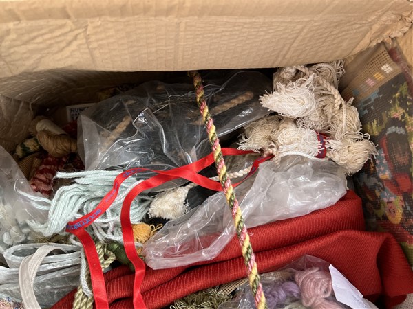 Cartone contenente ambrasse, cordoni e matassine di lana (difetti)