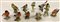 Manifattura di Dresda. Gruppo di dieci figurine in porcellana raffiguranti volatili su rami (difetti)