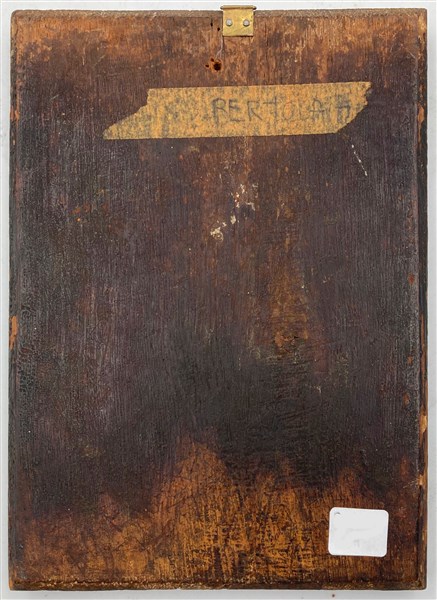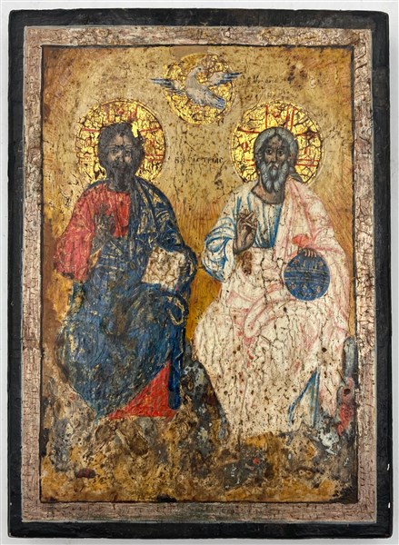 Maestro del secolo XIX "Trinità" icona ad olio su tavola (cm 17x23x2) (difetti)