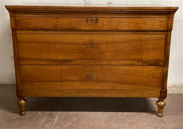 Lotto 3390 | Cassettone con fronte a tre cassetti e mezzo, piedi torniti. Secolo XIX (cm 140