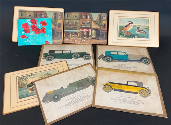 Cartone contenente numerose incisioni, riproduzioni e oggetti di diversa epoca