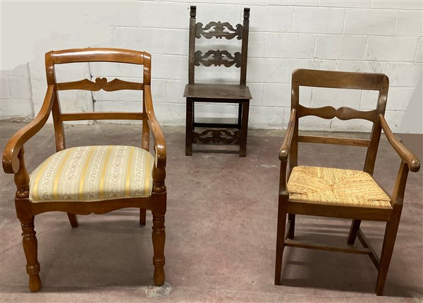 Lotto composto da due poltrone del secolo XIX ed una sedia in stile rinasciment