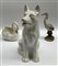 Lotto composto da una scultura in ceramica bianca raffigurante un cane seduto,