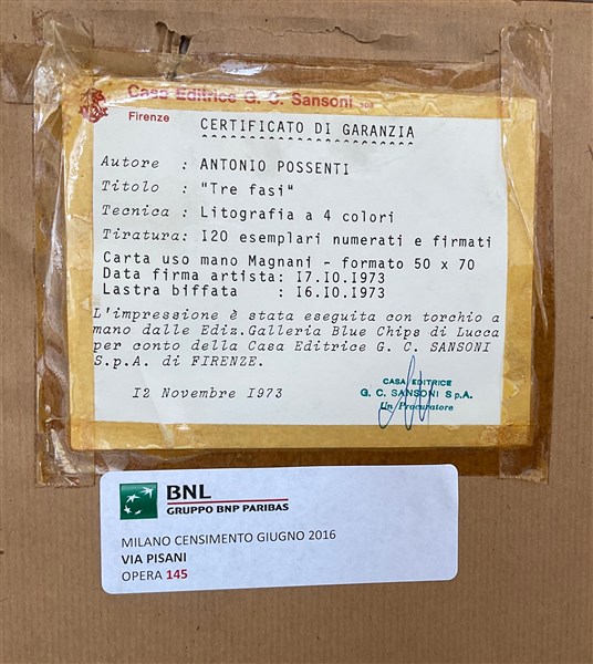 Lotto 3485 | Antonio Possenti "tre fasi" litografia a colori (cm 50x70) es. 23/120, firmata e