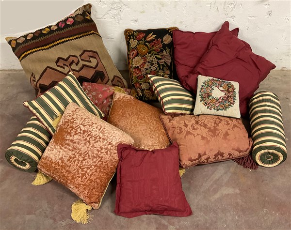 Lotto 3488 | Lotto di due cartoni contenenti numerosi cuscini di fatture differenti, tra cui