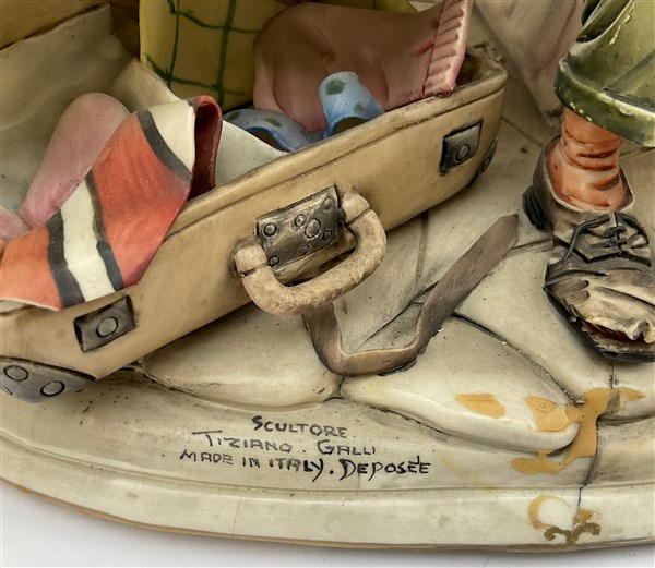 Tiziano Galli - Scultura in porcellana policroma raffigurante due uomini in con