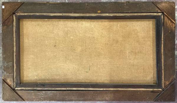 Scuola del secolo XVIII, "Paesaggio con pescatori", olio su tela (cm 68x133) In cornice laccata e dorata