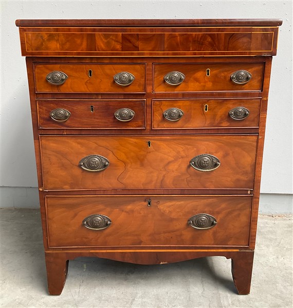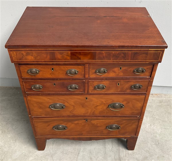 Cassettone filettato con fronte a due cassetti sotto quattro piccoli a mezza lu